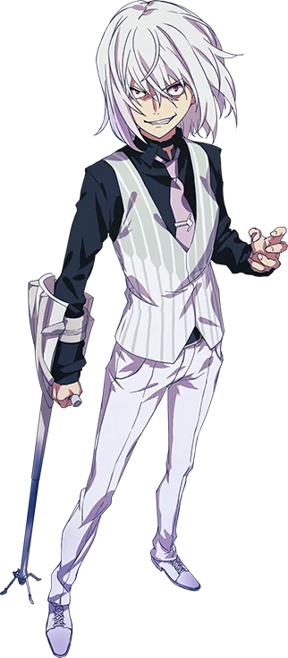 VISUAL: Thin and fragile, Accelerator is described as beautiful and androgynous, like "a highly polished sword designed solely for offense without considering defense." At 5'6" he's fairly short for his age, with little in the way of muscle. His hair reaches shoulder length and his bangs are usually in his eyes. His white hair and red eyes (described as being pigeon blood red), as well as his delicate frame and short stature are the result of his ability causing hormonal issues. He normally gets around using a fancy metal crutch that's needed for mobility due to his traumatic brain injury.